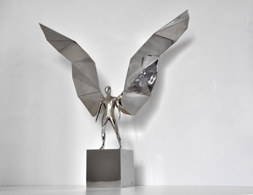 “In the eternal steel of my mirroring works we find our individual and cultural identity. We discover ourselves as protagonists and interpreters of the whole Humanity, which in the symbols reflects its messages and builds the future. We are free to choose and fly beyond all limits”