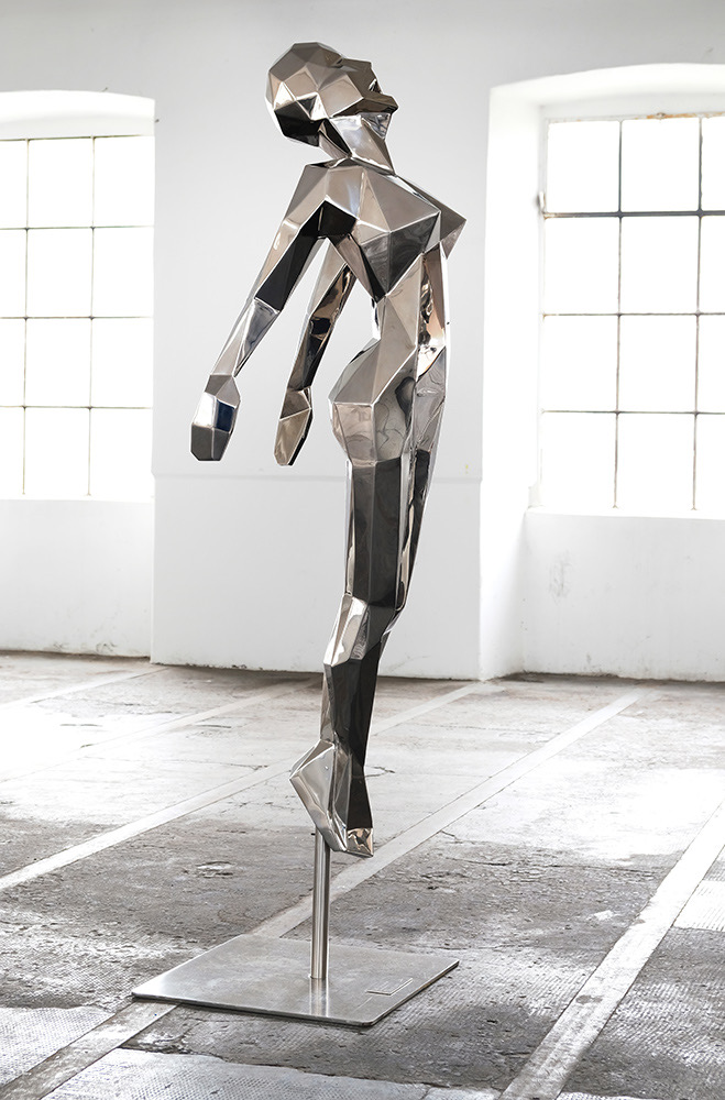 Daniele Basso is an Italian artist well known for his mirror finish metal works, which search and investigate the deeper meaning of things. His works are messages and reflections that lead to a deeper understanding of ourselves and help in the search for a collective and individual identity. Daniele participated three times to the Biennale d’Arte di Venezia with personal exhibits and works on display in several corners of the world, including Carrousel du Louvre (Paris), Seraphicum University (Vatican City), Arte Moderna di Roma (GNAM), Expo 2015 (Milan), World of Coca Cola (Atlanta), Museo Officine della Scrittura (Turin), Museo del Parco (Portofino), in the collections of Meneghetti Foundation and Boga Foundation (Lugano), and in various galleries in New York, Dubai, Saint Petersburg, Monte-Carlo, Forte dei Marmi, Lugano, Milan, Turin and Bologna. In 2015 he completed the works “Coke Its Me” (The Coca-Cola Company) and Gigant (SWC Alta Badia – Unesco Park Dolomites). In 2016 the monument ‘Aquamantio” (MOSCA1916) in Bialla, in Piazza della Biblioteca. In 2017 he worked with curator Ermanno Tedeschi and was awarded the prizes Casa Sanremo Award (67° Sanremo Festival), he completed the work Cavallino” for Ferrari’s 70th anniversary, he worked with Star Team Monaco and H.S:H. Alberto II, Prince of Monaco, he was awarded trophies for Įnter Football Club and for the collaboration with ski champion Max Blardone at the charity project “In pista per Amatrice”. 2018 the collaborations with the curator Matteo Graniti, with Galleria Ferrero Ivrea and Hysteria Art Gallery in Milan; the exhibitions “La Vespa nella Storia” at M.A.C.I.S.T. Biella, “Unforgettable Childwood” in Matera, at the National Museum of Ravenna and at the Tel Aviv Artist House, the solo in Azimut Capital Management Rome and the sculpture “In Fila Per Uno” in the exhibition “Ricordi Futuri 4.0” at the Holocaust Memorial of Milan curated by Ermanno Tedeschi. In 2019 the he is the Main Artist at the Teatro del Silenzio, creating the stage of the show “Ali di Libertà” by Andrea Bocelli, artistic director Alberto Bartalini and directed by Luca Tommassini.