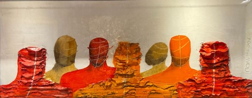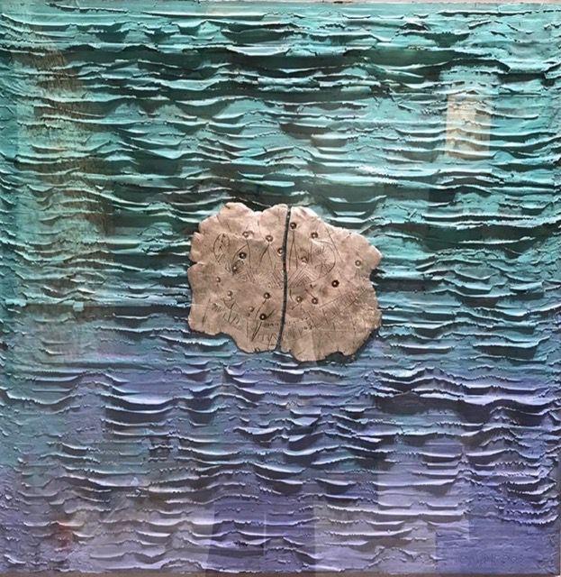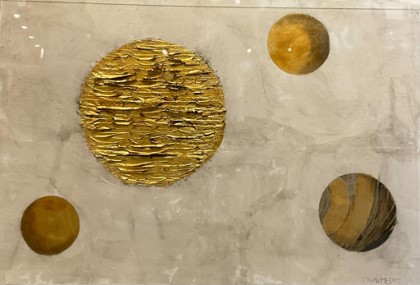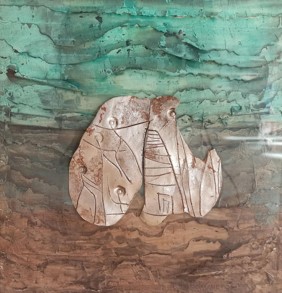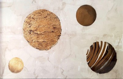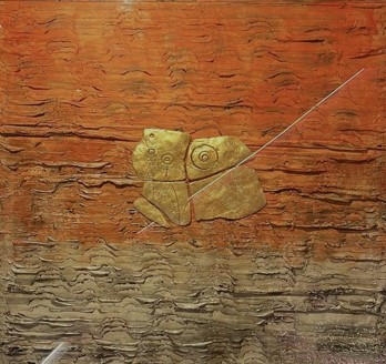 In his artworks, Polymeros often uses materials like metal, paper, oil, wax and gold or silver leaves. He also creates sculptures out of stone and wire. Polymeros’ art is multi-layered while maintaining a minimalistic look by drawing inspiration from the Greek landscape. His work features elemental objects and the most basic forms found in nature. Therefore, his work is surrounded by an aura of quiet recollection and can represent stillness or graceful motion.