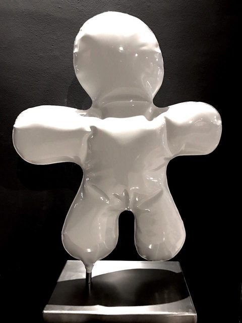 The majority of his works are sculptures shaped by inflation. It is through this unique technology that extends the visionary creativity of the artist, which allowed his imagination and his mischievous humour to take concrete form. His works are characterised by visual lightness, combining the weight of the metal patina to the flexibility of the air; lightness of a colourful and carefree dream world.