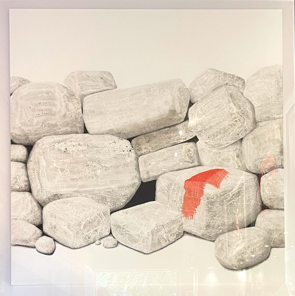 s professor D. Charitos notes: “Sorogas’ painting approaches the space of tragedy, […] that is why his themes are few, just as few are the actors in a tragic play”. His favourite themes are rocks, holes and rusted objects that express the artist’s protest against the fear of death, the fear of nothingness. These same elemental objects presuppose precise and clear lines. That’s why Sorogas locates them in front of a white background creating an original rendition of light that is minimalistic and illuminating at the same time.